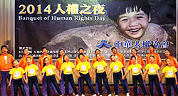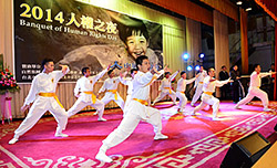 台灣今年度票選字出爐,「黑」字列為榜首,可見人們心中充滿不安。「2014人權之夜」開場表演邀請到太極門氣功養生學會,一群良心時代的國際青年志工帶來「世界公民 團結向前行」的聯合展演,首先登場的是太極門青年武術,身手矯健正氣凜然,關心世界捍衛正義,希望人權落實、民心安定、社稷平安、世界和平,他們當中也有首投族,不僅關心國家未來,也積極參與公益活動。接著穿著黃色笑臉T恤的孩子與「Energy Boys & Energy Girls」青少年合唱「Love and Peace Song」,燦爛微笑與喜悅歌聲,彷彿來自天使的祝福。接著響起今年最熱門「良心時代」歌曲,年輕新世代以現代舞,搭配一盞盞良心燈籠,為世界傳送一波波希望與光明。精彩的展演蘊含很深的意義,「世界公民享人權,每個人都是良心領袖,啟動正面能量的蝴蝶效應,喚起世人的良心,為社會國家注入正義與安定的力量。感謝各位為人權奮鬥的前輩們,讓我們一起繼續為護衛人權、造福世人的志業大步前進。」並邀請大家響應「良心時代運動」,希望之光,有你有我,人人一起帶著微笑,說好話,做好事!所有人手比良心時代手勢,齊喊:「守護你我心中的良知 共創愛與和平心時代」。