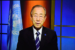 | 聯合國秘書長潘基文在今年人權日所發表致詞:在人權日我們大聲疾呼,譴責當局剝奪任何個人或團體的權利。 |