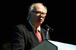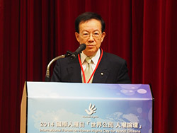 | 兩年前曾遠從法國來台灣進行人權考察的聯合國NGO世界公民總會主席Dr. Rene Wadlow致詞表達祝賀,呼籲大家繼續努力,建構一個人人互相尊重並遵循法治的理想社會。 |
