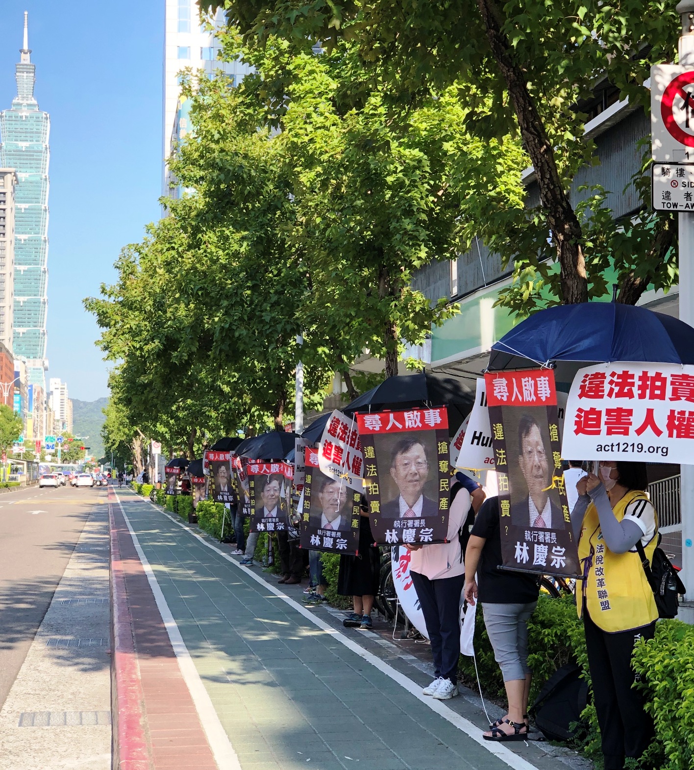 9月6日的台北街頭,從凱道延伸到民進黨黨部、忠孝東路、東區商圈、信義路、101大樓,平反1219行動聯盟、法稅改革聯盟等民團,聲援從無欠稅的太極門以及諸多稅災戶,財產被違法強行拍賣,人權被蹂躪!中南部鄉親也北上呼應,在台北市主要幹道舉牌拉布條達數十公里,控訴執行署、國稅局官僚殺人,坑民財產!呼籲蔡英文總統、監察院長陳菊伸張正義。