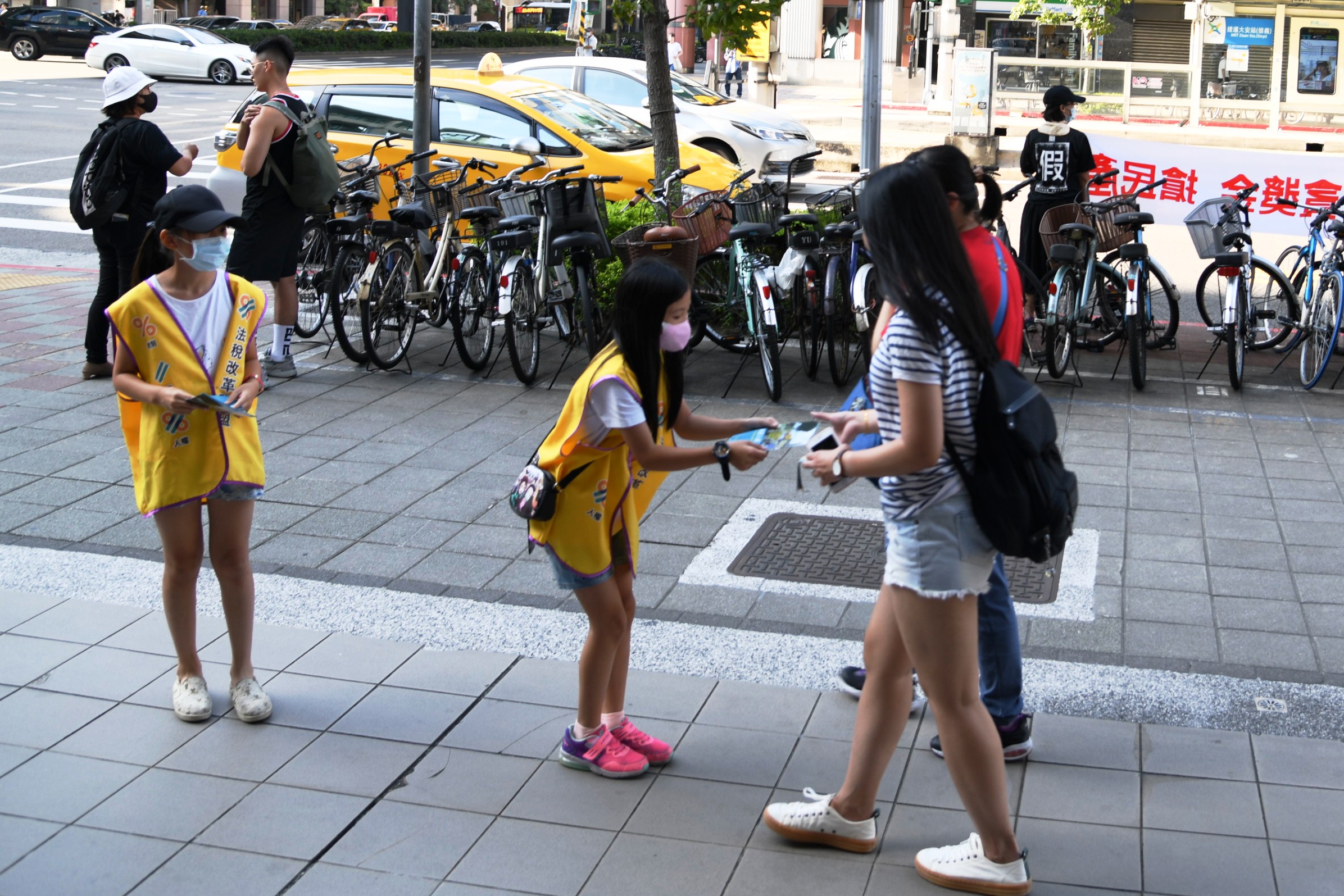 圖3:小小志工小樂(左)與小依(右)發著傳單,希望未來自己身處的環境會更好。